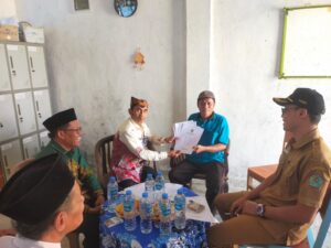 Penyerahan Akta Ikrar Wakaf (AIW) oleh Pejabat Pembuat Akta Ikrar Wakaf (PPAIW) KUA Pademawu kepada Nazhir Wakaf di desa Tanjung