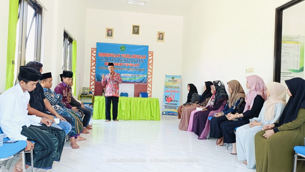 Tlanakan, 9 Oktober 2025 — Dalam upaya membangun fondasi keluarga yang kuat dan harmonis, Kantor Urusan Agama (KUA) Tlanakan melaksanakan kegiatan Bimbingan Perkawinan (Bimwin) pada Kamis, 9 Oktober 2025.