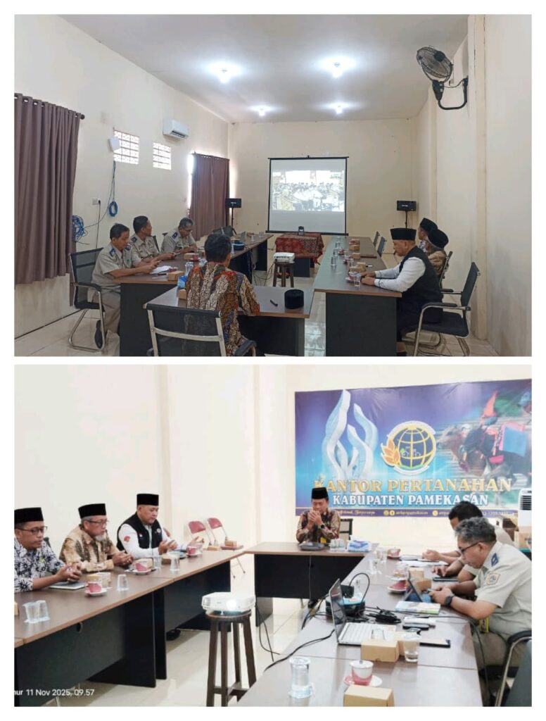Pamekasan– Kepala Kantor Wilayah (Kanwil) Badan Pertanahan Nasional (BPN) Provinsi Jawa Timur bersama Kepala Kanwil Kementerian Agama (Kemenag) Provinsi Jawa Timur, menggelar Rapat Koordinasi (Rakor) strategis secara virtual. Pertemuan ini fokus membahas percepatan dan pengamanan aset tanah wakaf serta rumah ibadah di seluruh Jawa Timur. Rakor yang dilaksanakan pada hari Selasa, 11 Nopember 2026 ini