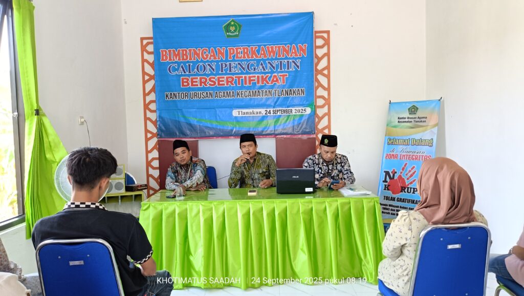Pamekasan, 24 September 2025 – Kantor Urusan Agama (KUA) Kecamatan Tlanakan menggelar kegiatan Bimbingan Perkawinan (Binwin) pada Rabu (24/9), yang diikuti oleh 40 pasangan calon suami istri.